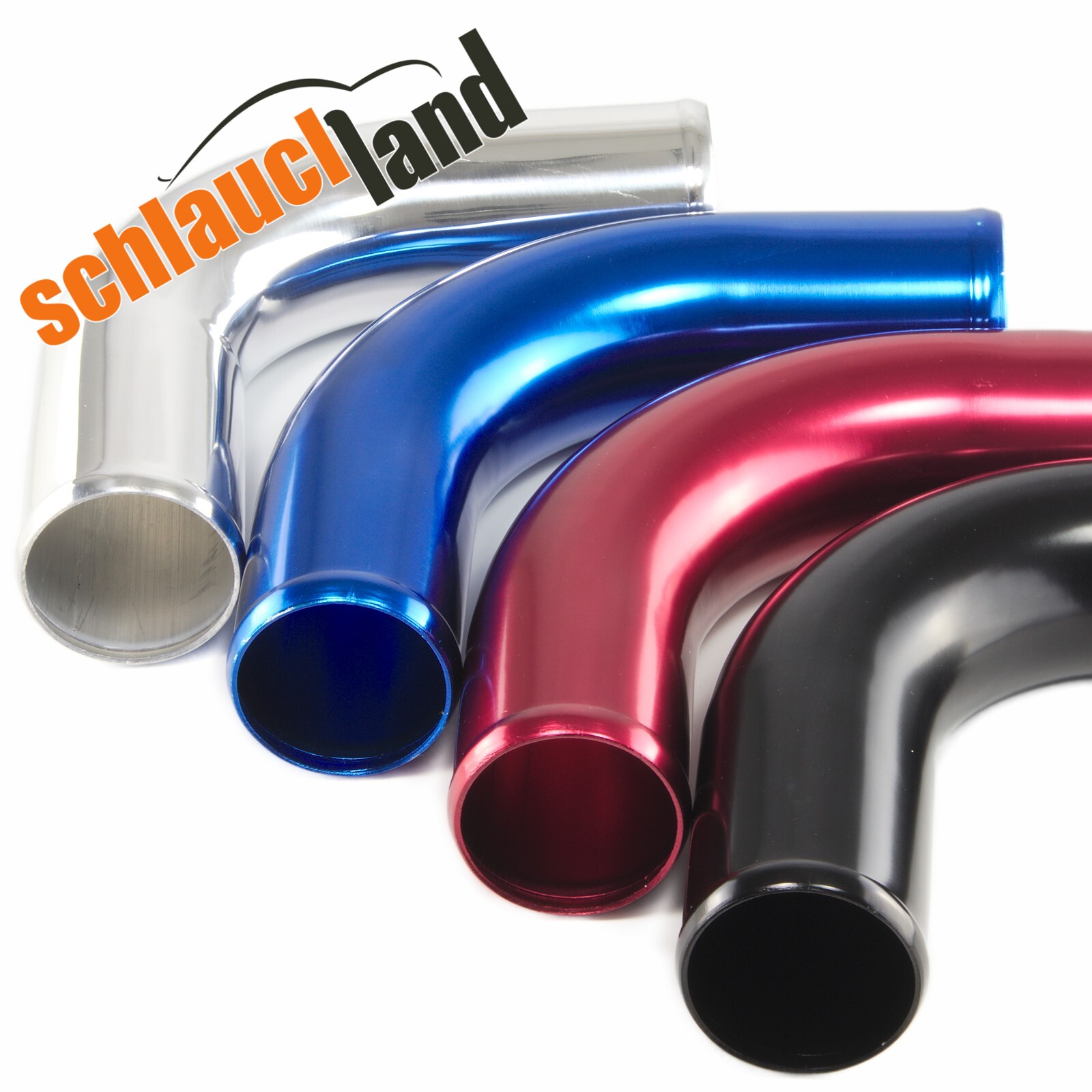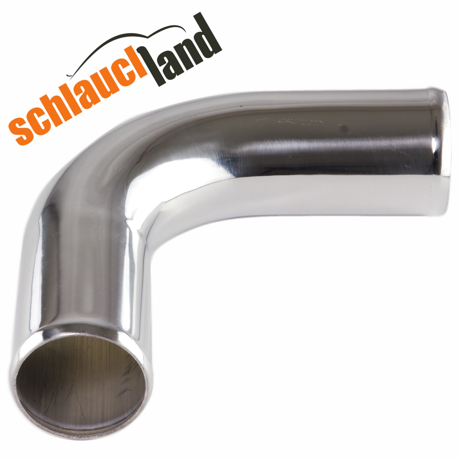 ALU Alurohr – 90° Bogen aus T6063 AlMgSi (schweißbar) für höchste Qualitätsansprüche. Die Rohrenden der Alurohre sind mit einer Bördelung (Wulst) versehen. Diese Erhöhung am Rohrende um ca. 1 mm gewährleistet einen dichten Anschluss von Schläuchen und garantiert einen festen Halt von Schlauchschellen auch unter extremen Bedingungen. Die hochglanz-polierte Oberfläche der Alurohre sorgt für eine hochwertige, edle Optik.