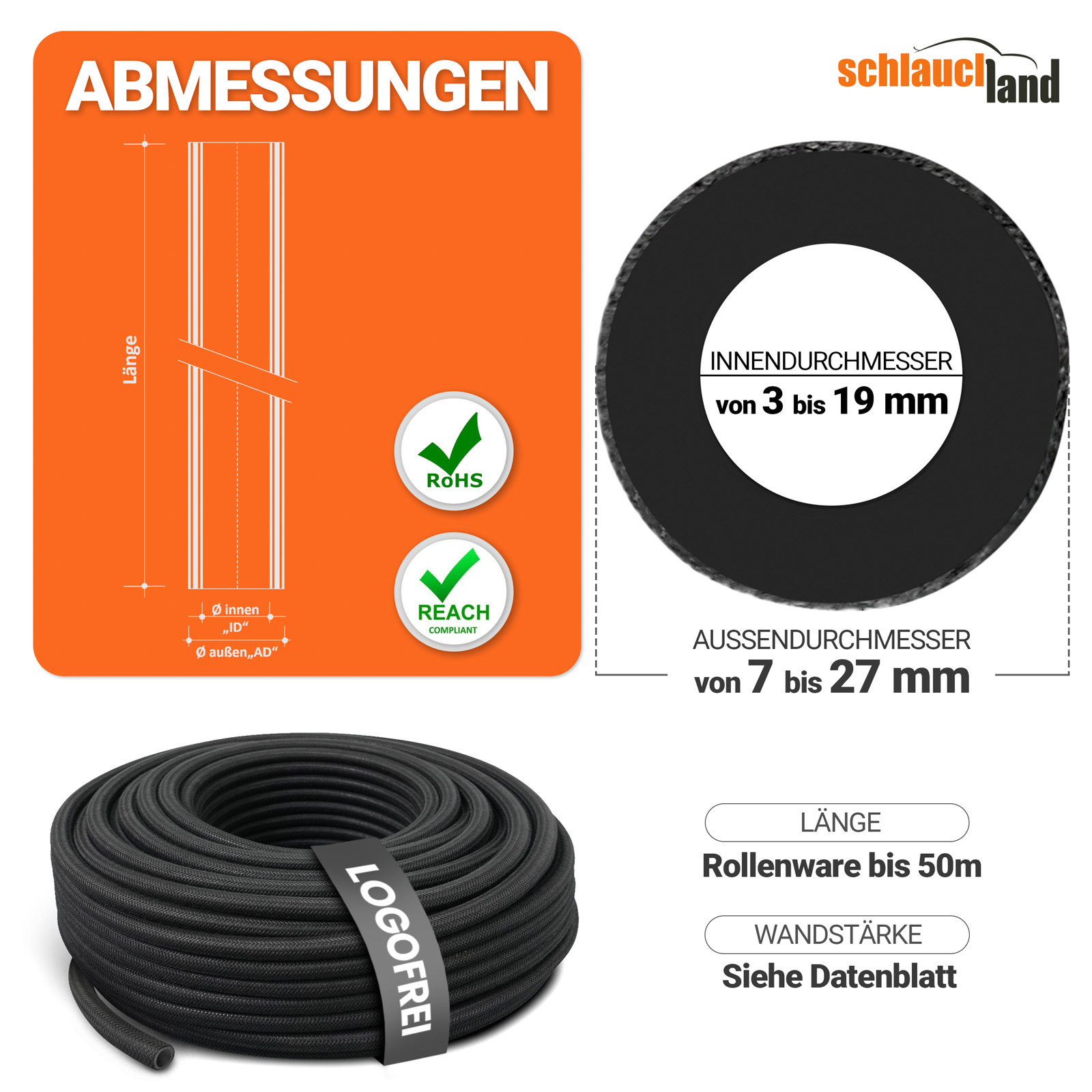 Schlauchland® - Für den professionellen Bedarf und OEMs - frei von Brandings & Logos. Sonderwünsche – fragen Sie uns! Wir fertigen auf Maß - schnell & zuverlässig