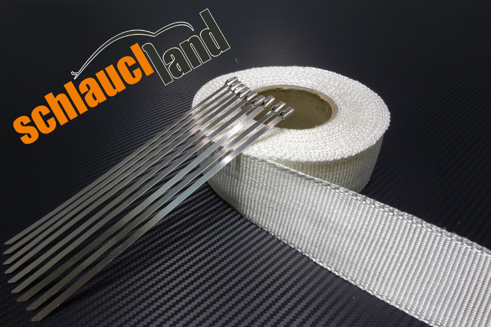 Hitzschutzband zum Umwickeln heisser Oberflächen wie z.B. Abgasanlagen, Krümmer, Öfen. Schützt umliegende Bauteile vor zu hoher Hitzestrahlung. Für erhöhte Leistung und hohe Sicherheit im Automobilbereich. Auch für landwirtschaftliche Maschinen, Traktoren, Boote, Schiffe oder Industrieanlagen geeignet. Für die Ummantelung eines Standard 4-Zylinder Abgaskrümmers werden ca. 15 Meter Hitzeschutzband benötigt.