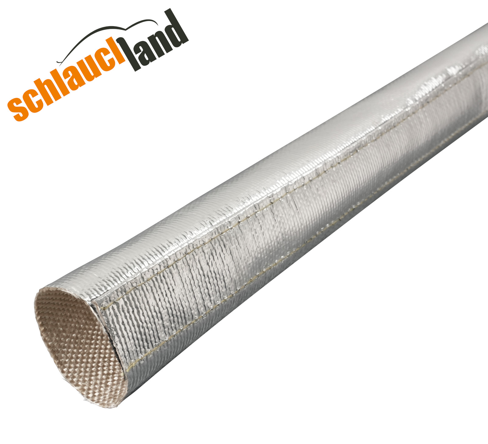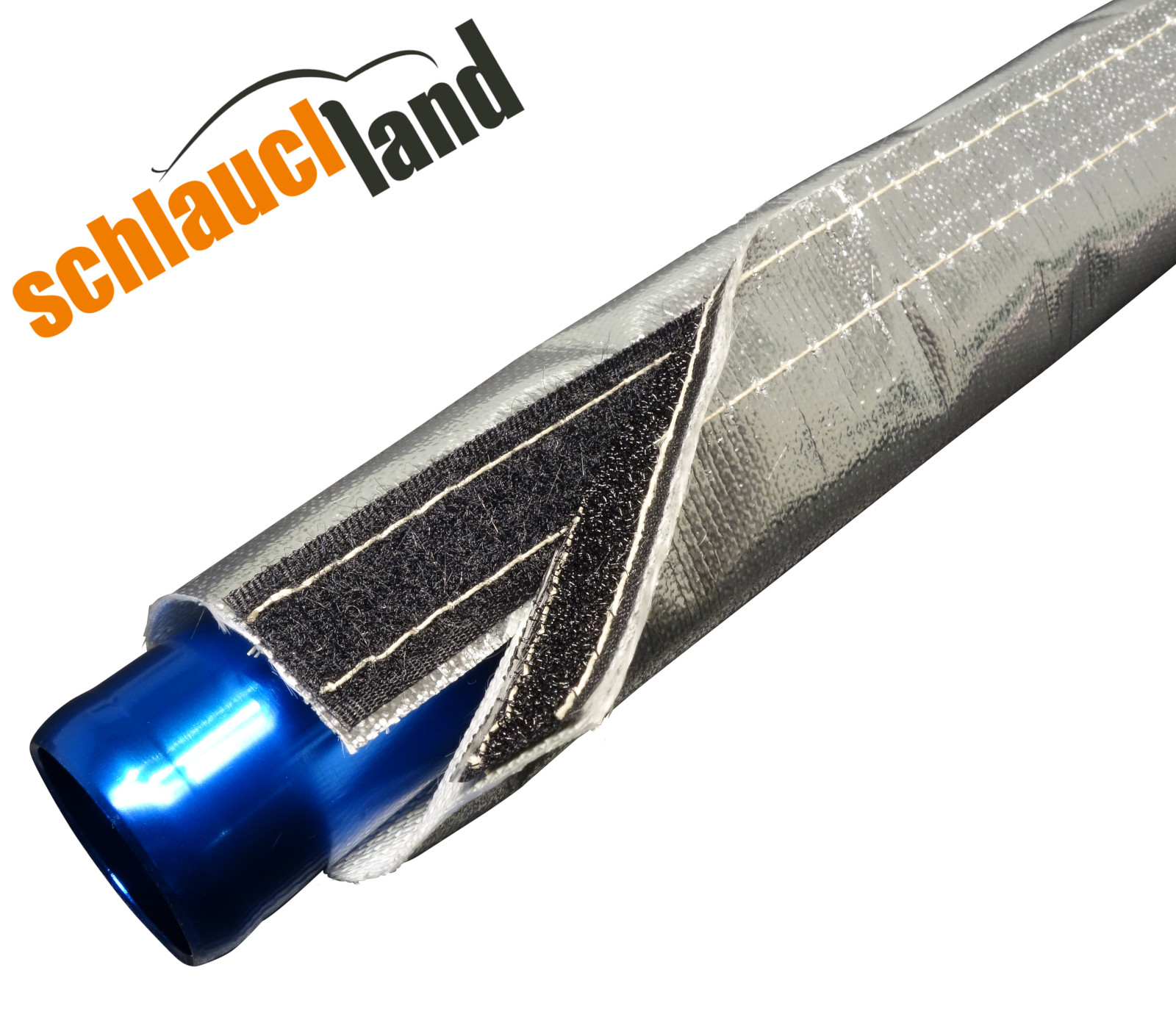 Aluminium TITAN Hitzeschutz-Schlauch mit Klettverschluss – Thermischer Schutz / Isolierung von Kabeln, Leitungen & Schläuchen vor Hitzestrahlung und heißen Oberflächen wie z.B. Abgasanlagen, Krümmer, Motorteilen, Öfen & Kompressoren. Alu-Oberfläche mit Hochtemperatur & Feuer-fester Anti-Kratz & Abriebschutz-Beschichtung (Anti-Friction AFR). Nähte aus synthetischer Aramid-Kevlar-Faser – reißfest und hitzebeständig bis 260°C. Erste Wahl für Profis, Kfz, Maschinenbau, Heimwerker, Landwirtschaft, Gewerbe und Industrie.