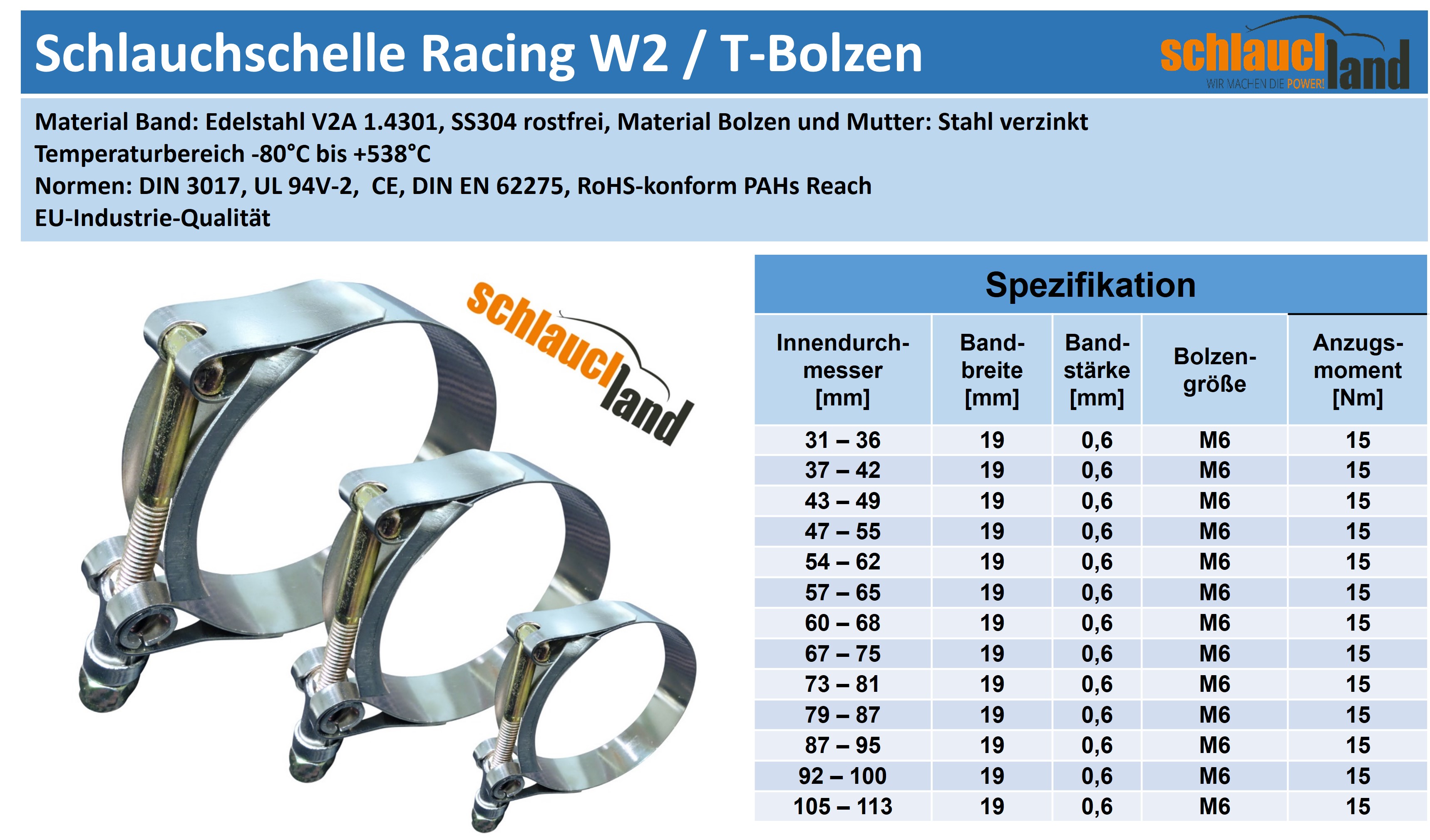 Datenblatt Edelstahlschelle Racing W2