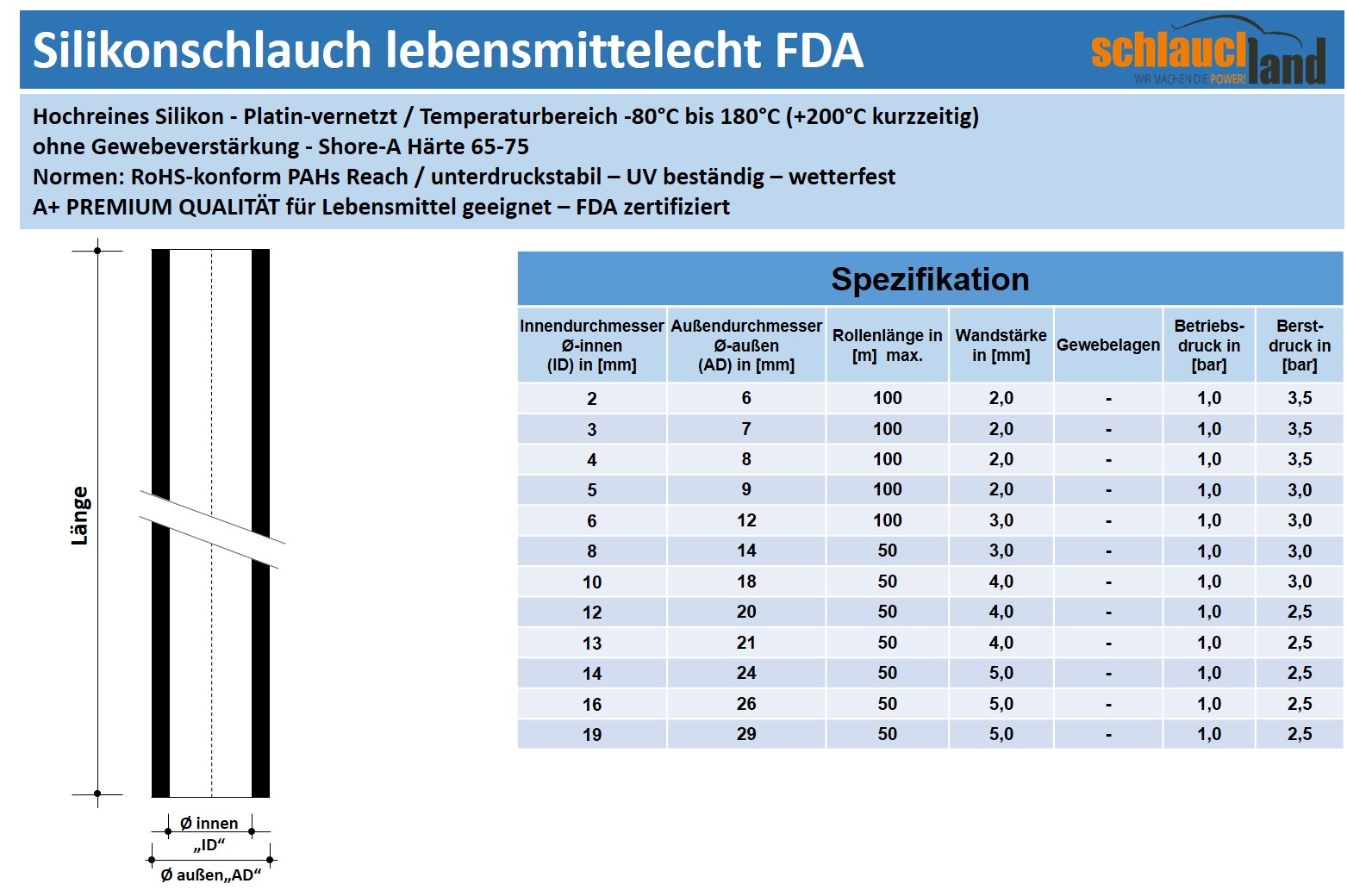 Schlauchland® - Für den professionellen Bedarf und OEMs - frei von Brandings & Logos. Sonderwünsche – fragen Sie uns! Wir fertigen auf Maß - schnell & zuverlässig