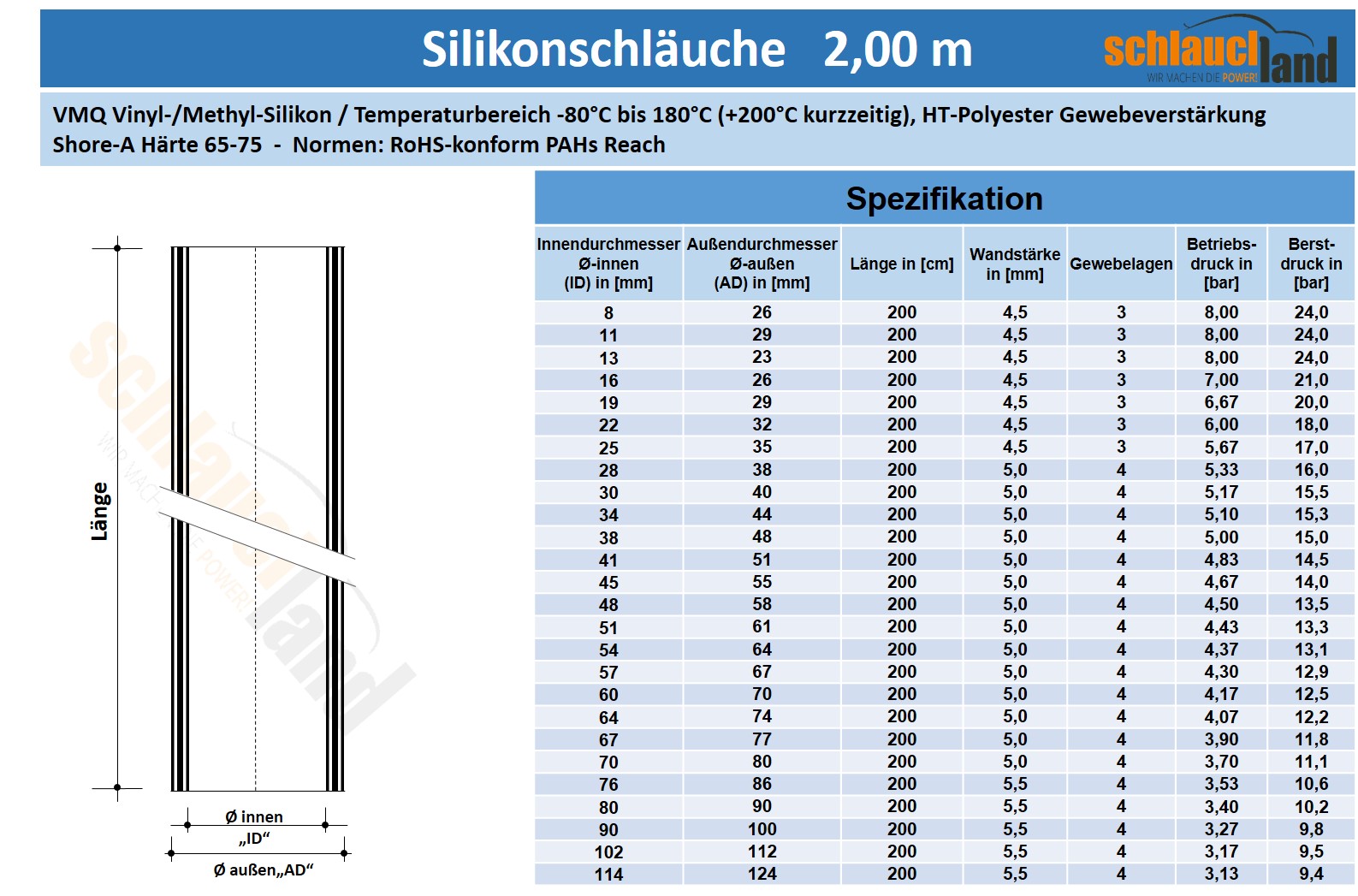 200 cm Silikonschlauch - Stück in TOP-QUALITÄT mit mehrlagiger Gewebeverstärkung aus... mehr